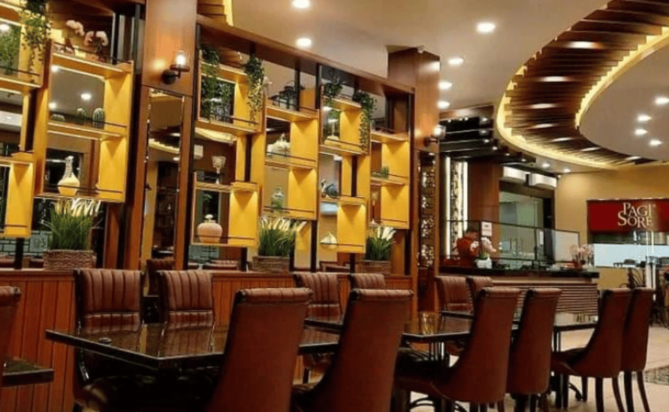 Masuk ke Restoran Pagisore, para tamu langsung disambut oleh suasana hangat dan elegan. Interior restoran dirancang sedemikian rupa untuk menciptakan kenyamanan sekaligus estetika visual yang menarik. Pencahayaan lembut dan tata letak ruang yang rapi membuat pengalaman bersantap menjadi semakin menyenangkan.